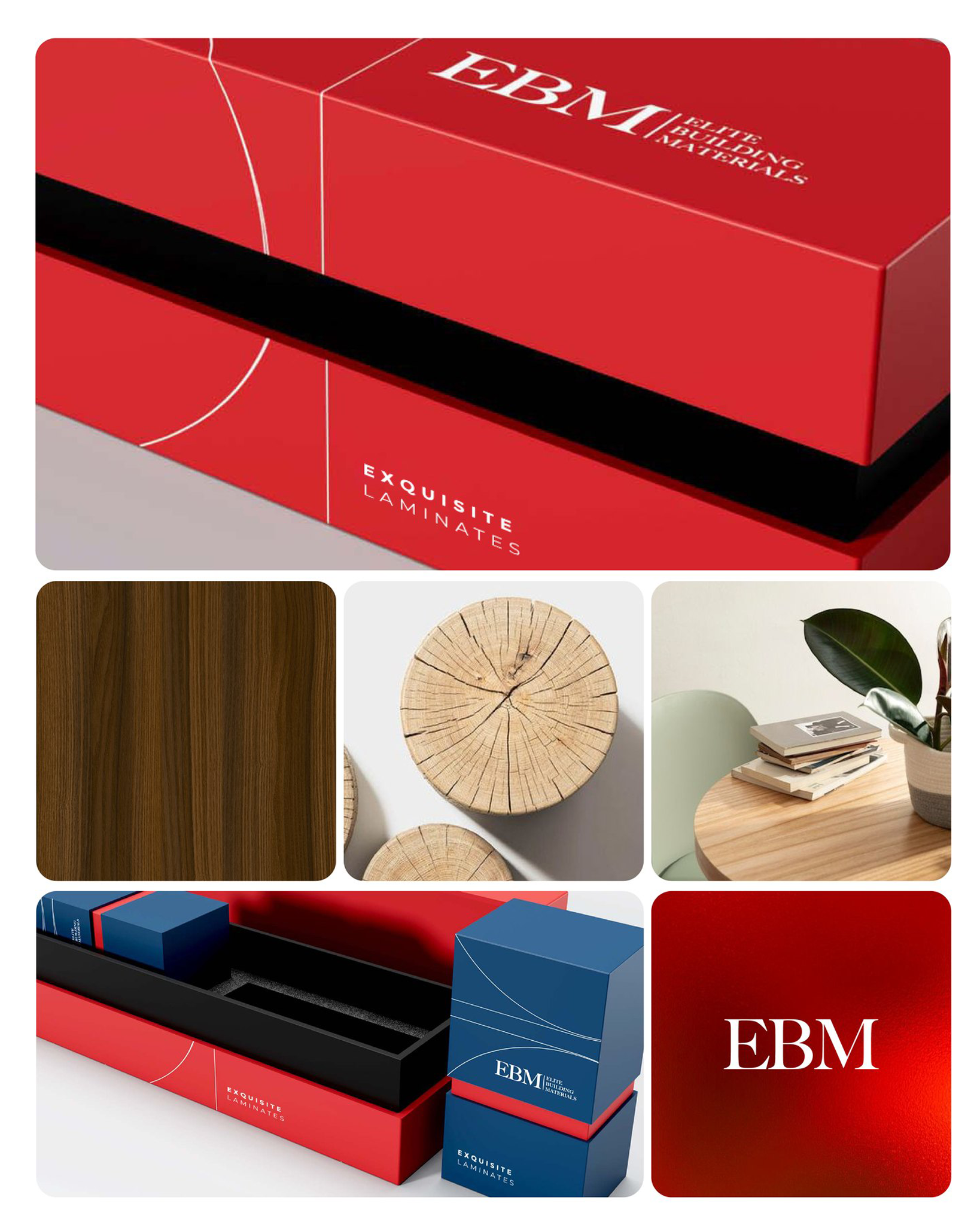 The intent was to clearly define what EBM stands for: Elite Building Materials - not as just a single product brand, but as a parent entity curating and representing premium building material brands in the architectural and interiors space.