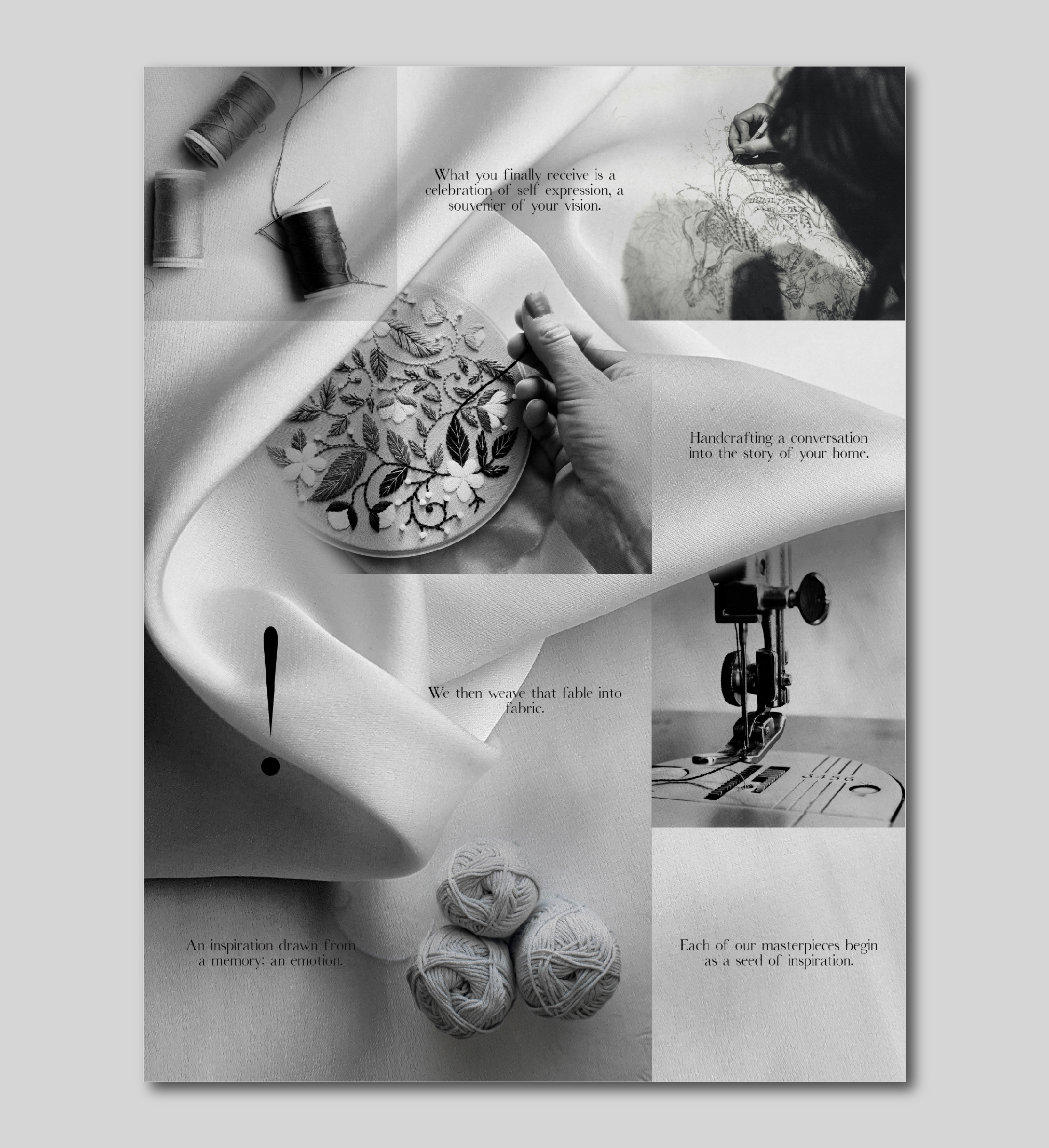- Visual Identity: The wordmark featured exclamation marks (!) as the i’s, a nod to the energy and attention soft furnishings bring to a space. The typography reflected fluidity and softness, creating a sense of movement.